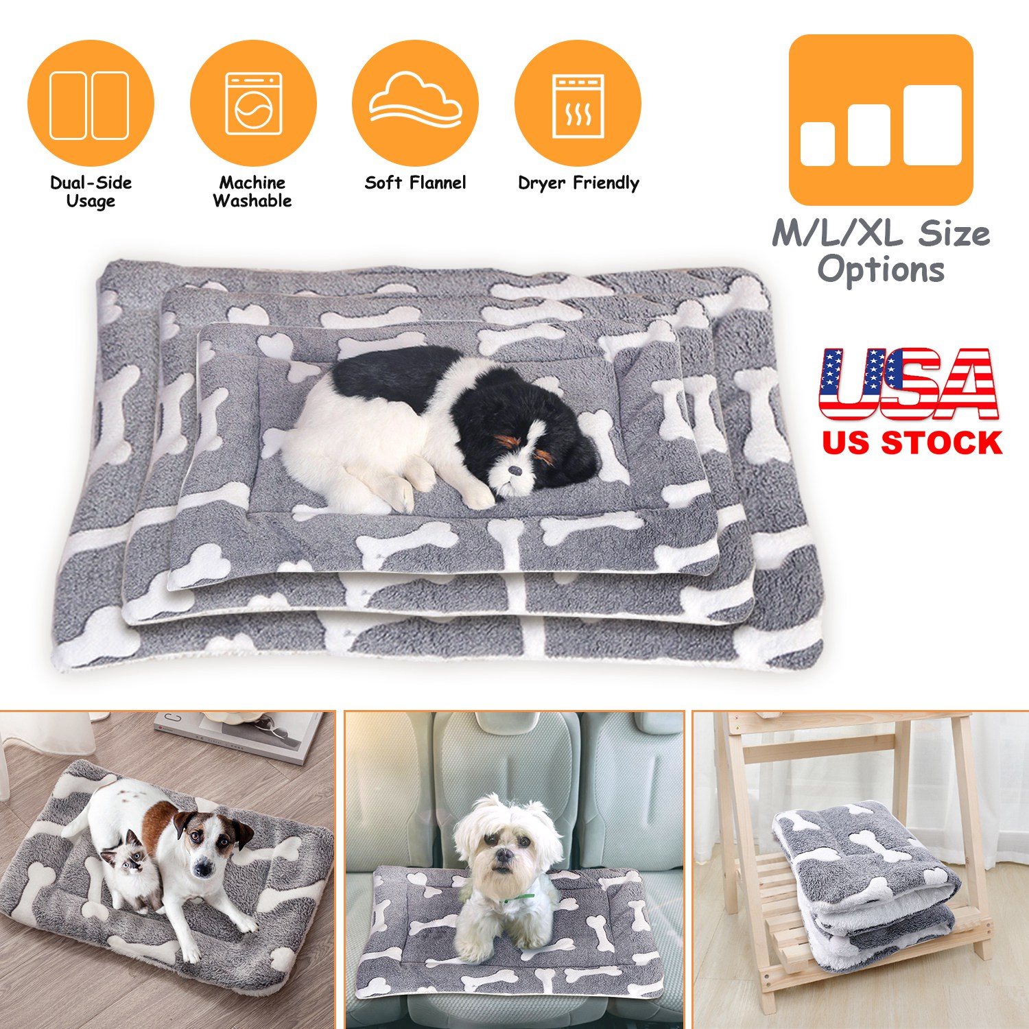 Home > Dog Bed Mat Comfortable Flannel Dog Crate Pad Reversible Cushion Carpet Machine Washable Pet Bed Liner with Bone Patterns Dual-Side Usage for M/L/XL D