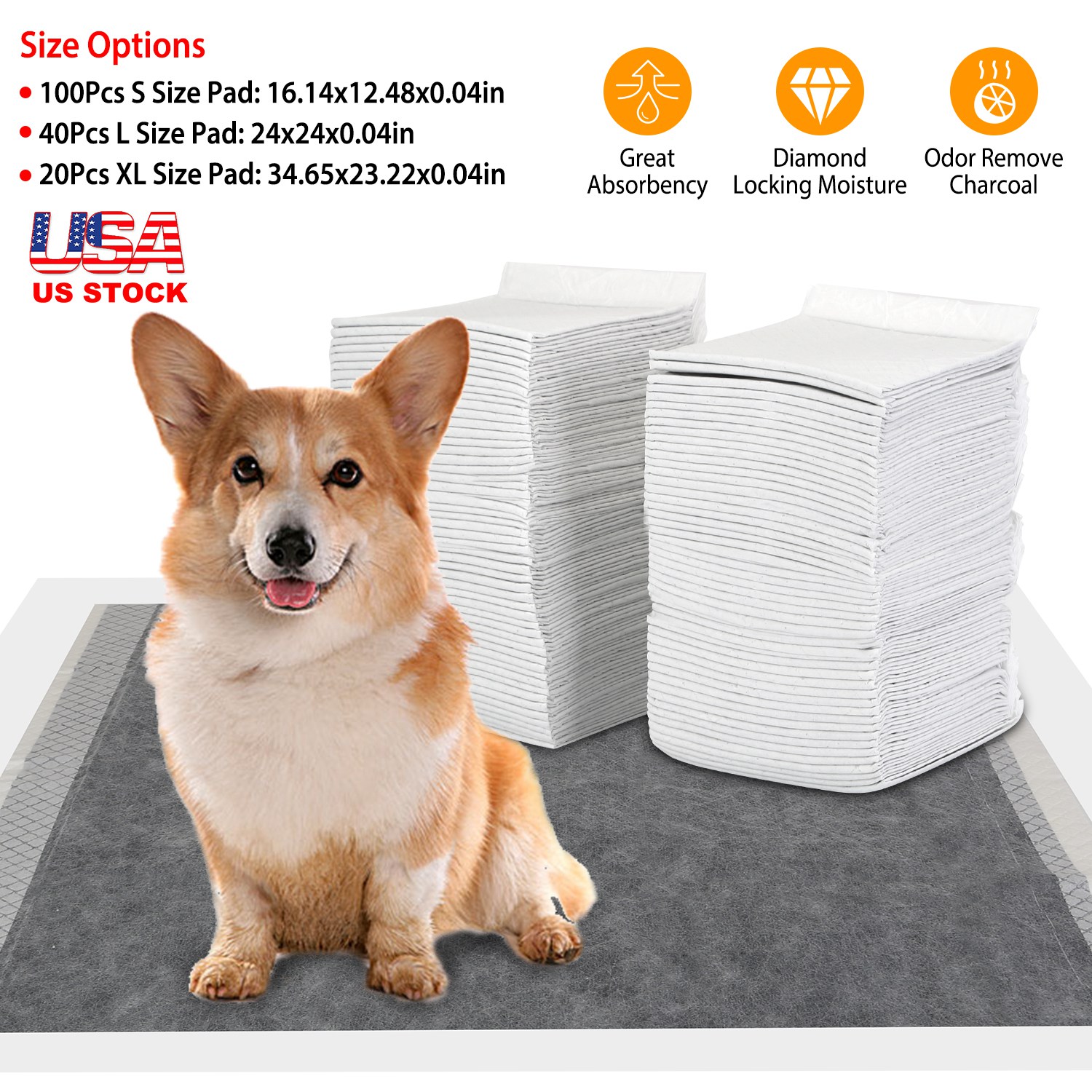 Come with S/L/XL size options, these dog pads are great for puppies, dogs, elderly canines, kittens, cats and other pets, also ideal for your indoor or outdoor use. Activated carbon added in our pee pads helps to eliminate and neutralize any strong and unpleasant odors, giving you fresh clean and odor-free air throughout the day. Disposable design allows you to simply toss the pad, and lay down a new one, making cleanup a snap. Featured with great absorbency and SAP polymer core, there will be no leakages coming from the underside of our pads. No more mess about floors/sofa.